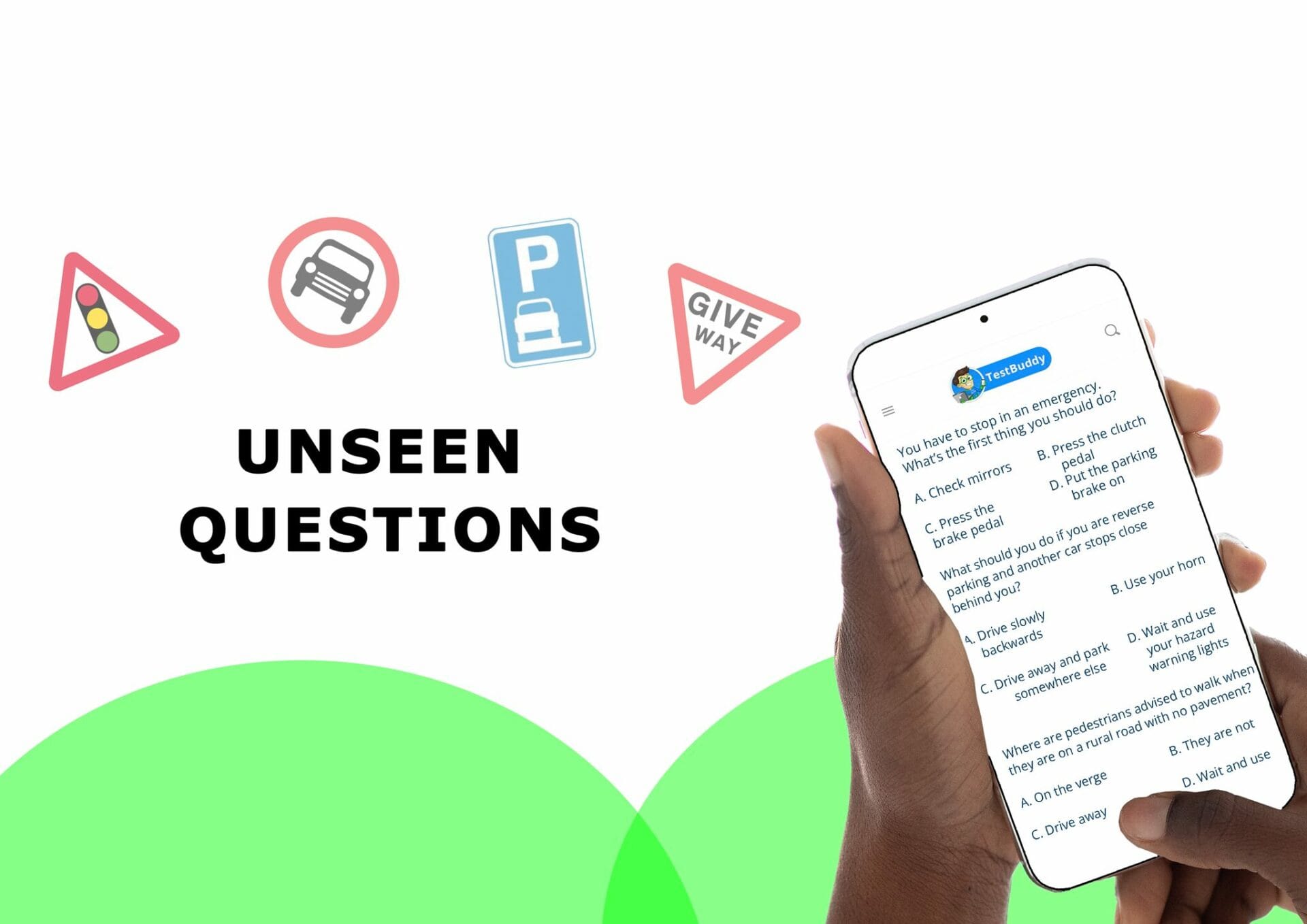 Have a go at some Unseen Questions to prepare to pass your theory test. These questions are similar to questions you will see in your real theory test. Answering them correctly will help prepare you to pass.