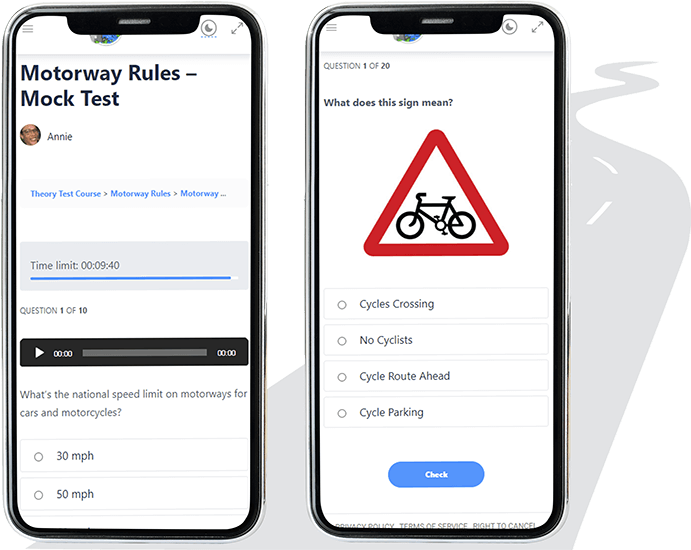 Theory Test Course has over 60 quizzes for you to continually assess how you are doing. The 16 mock tests are designed to cover every single DVSA practice question.